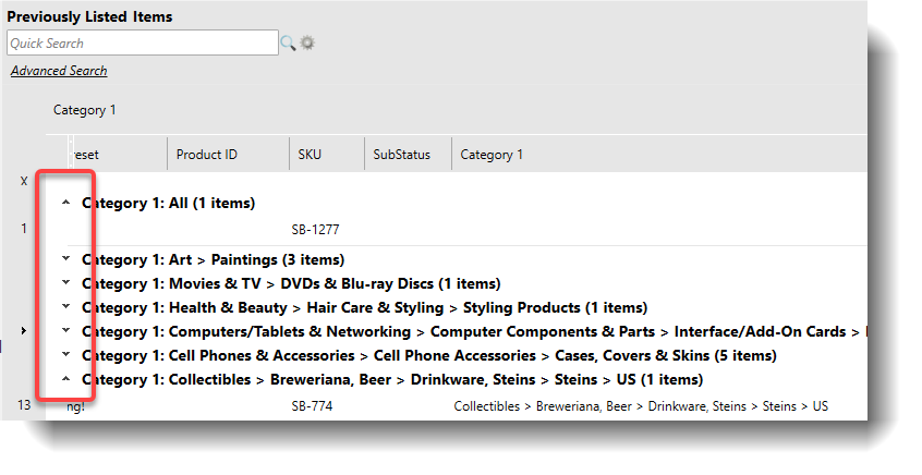 Data in SixBit grids can be grouped to view it broken down into different categories. Some grids provide a Group By row, where you can drag one or more column headers onto the row to group your data by those fields. Once grouped, the grid will display expandable sections that make it easy to see items organized by the selected values. The majority of grids in SixBit support grouping, including the Mode grids, Event Log, and Variations grids. This allows you to quickly organize and analyze your data without exporting it.