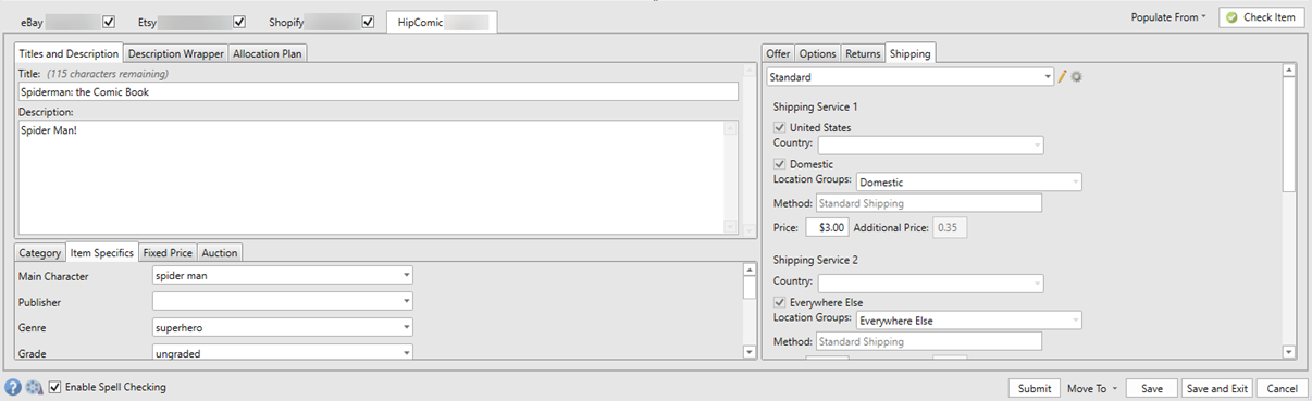 - Category and Item Specifics