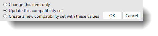 To save the changes to the chosen set, choose Update this compatibility set. Please note that all items that use this compatibility set will be affected.