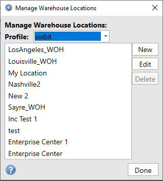 2. On the Manage Warehouse Locations window click the New button to add a warehouse or select an existing warehouse and select Edit.