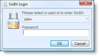 Initially, a user called Admin is created without a password. As long as there is only a single user and no password is required, then users will not see a login window when starting SixBit. Once a password has been added to the Admin account or once a second user has been created, the login window will appear duringstartup.